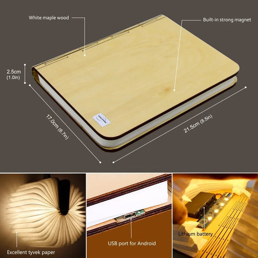 3 or 5 Colored 3D Folding Creative LED Night Light RGB Color USB Recharge Wooden Book Light Decor Bedroom Desk Table Lamp